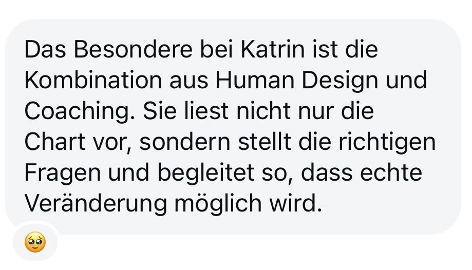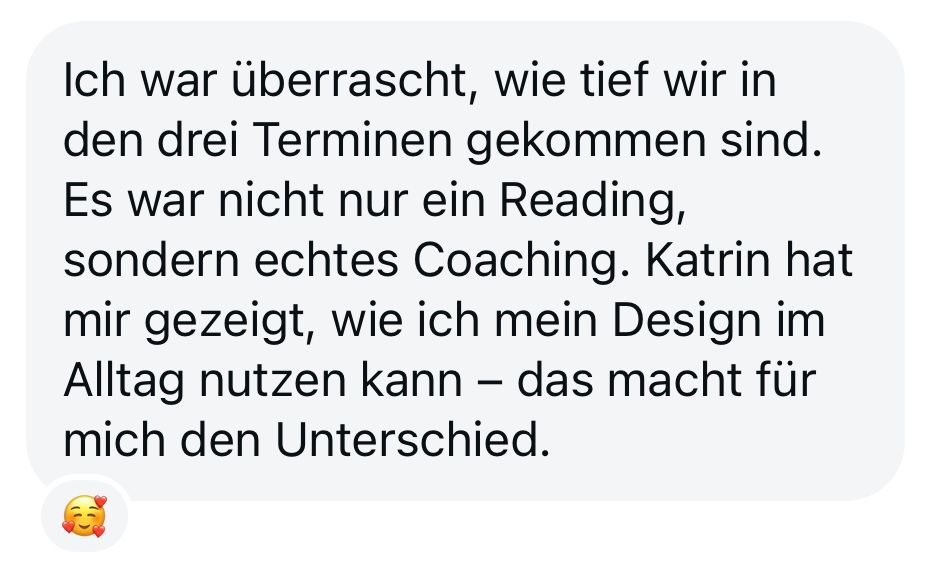 Ob Impuls-Reading oder Basic Reading - hier bekommst du dein Human Design auf eine klare, verständliche und praktische Weise erklärt. Ich gehe auf deine individuelle Chart ein, damit du deine Energie, deine Entscheidungsstrategie und dein Potenzial wirklich im Alltag erleben kannst.