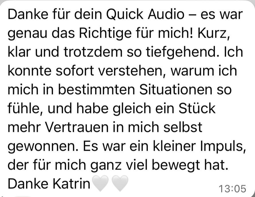 - dein persönlicher Audio-Impuls - klar, verständlich und direkt auf dich zugeschnitten