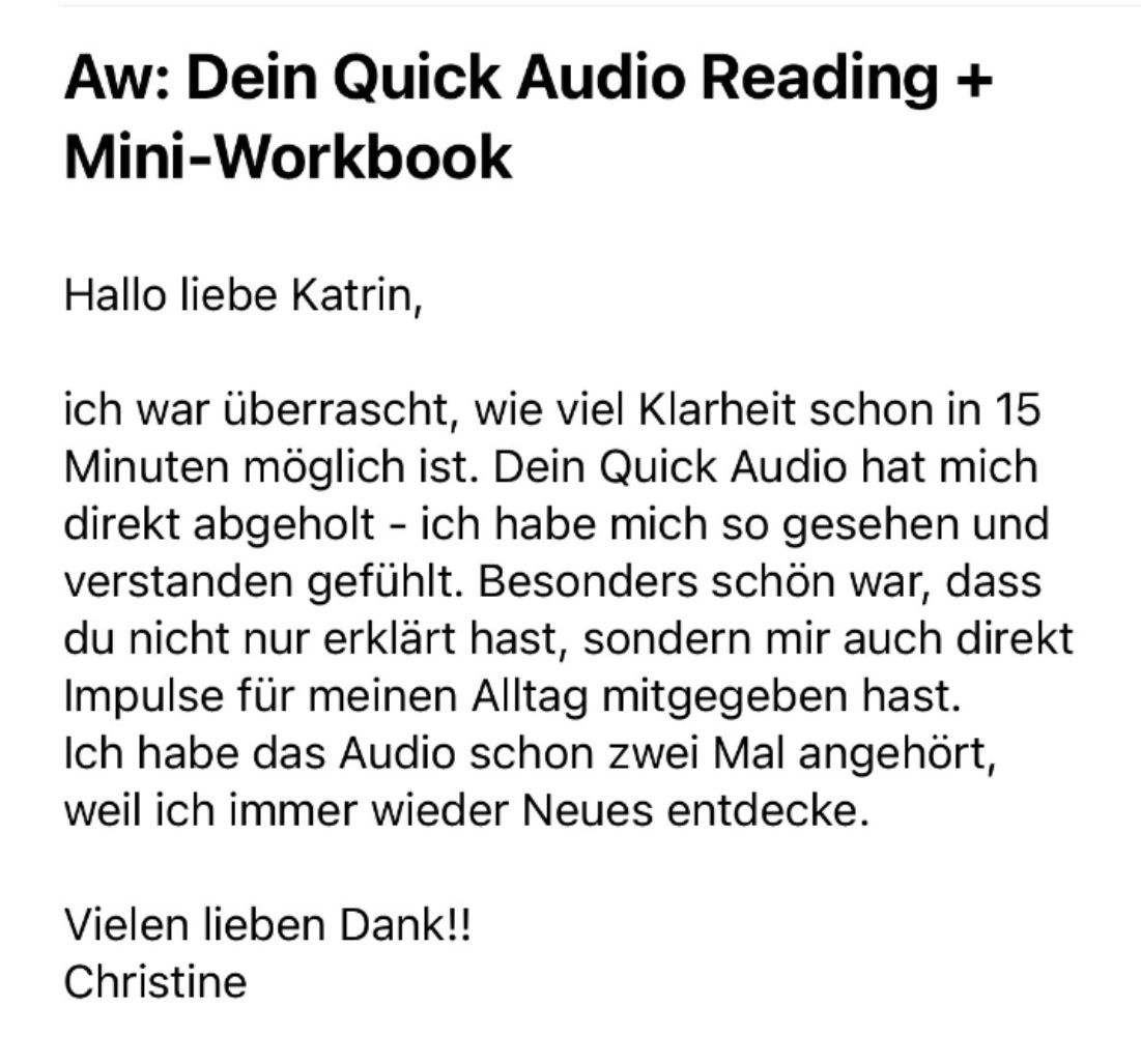 - kein Termin, keine Vorbereitung - du bekommst deinen Impuls, wenn es dir passt
